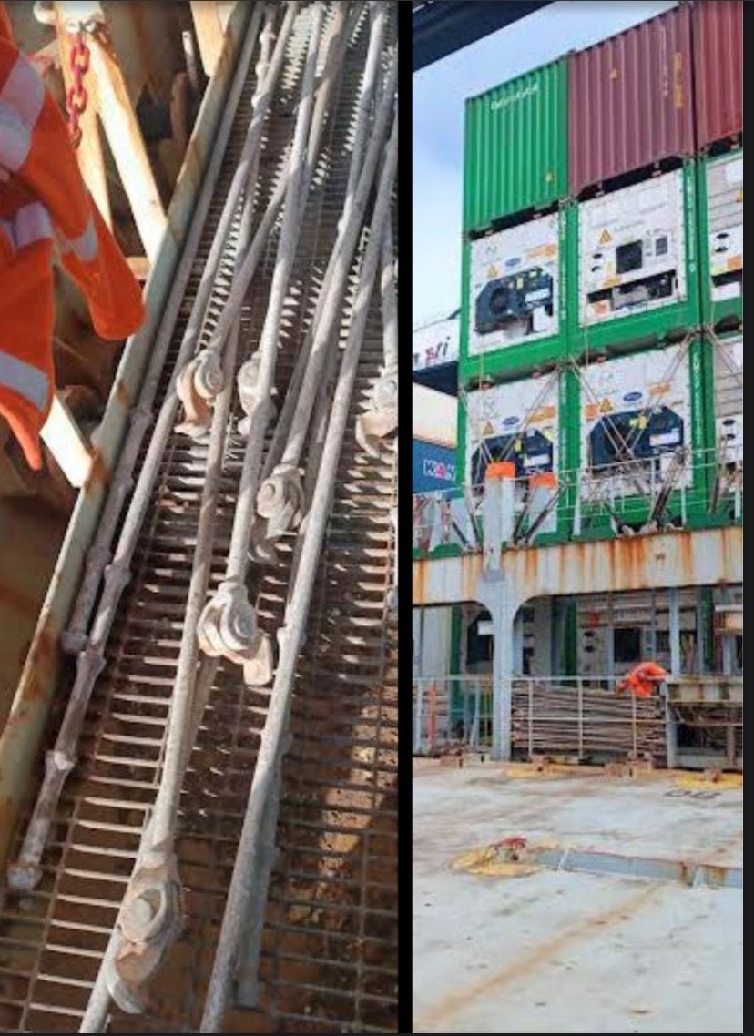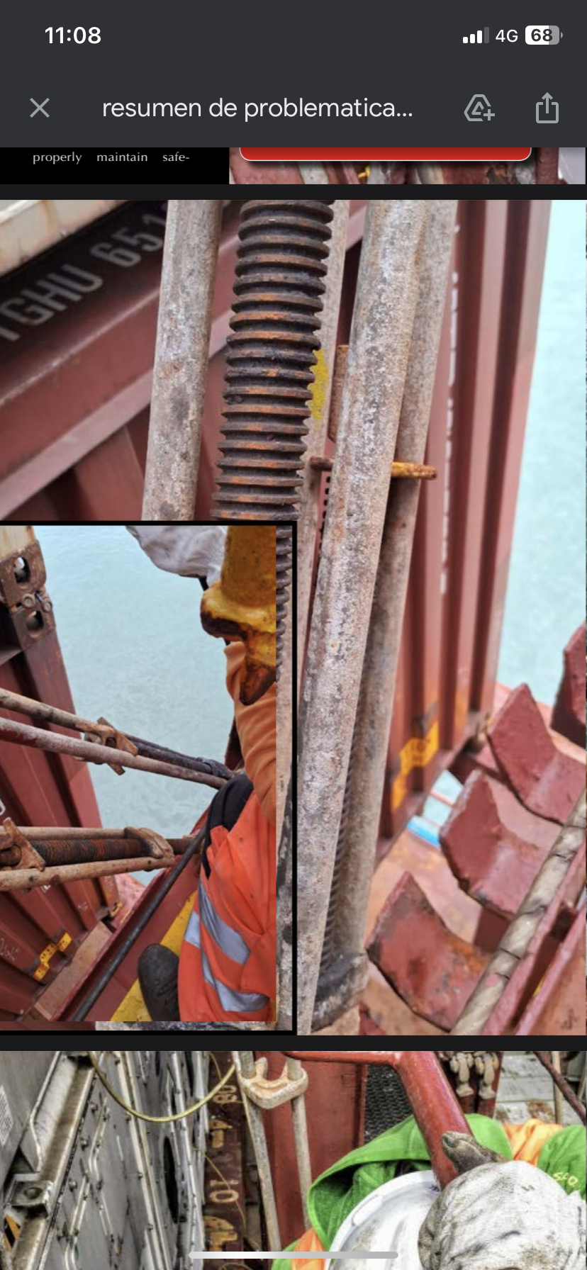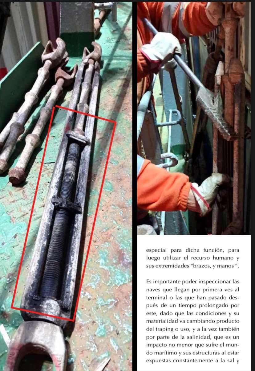 En este caso el problema es con los tensores o tornillos de giro y conexión de las barras de trinca. Este último tiempo estamos teniendo bastantes lesiones físicas atribuibles a la mala mantención que está herramienta de trabajo al no tener la mantención adecuada por parte de la nave o armador.